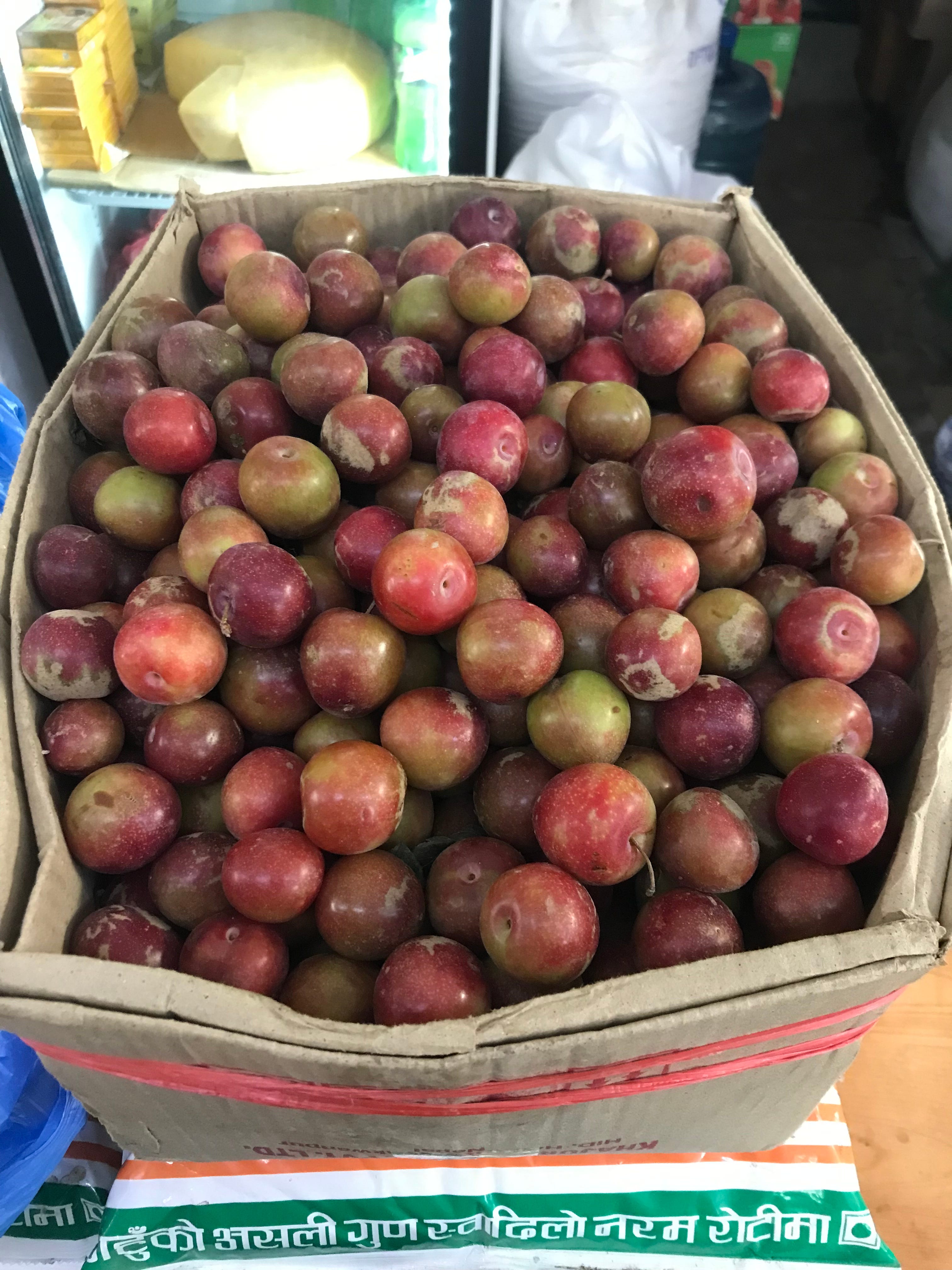 Peaches I prefer to eat fresh, and more than once recently I’ve shared them out with those I ran into after buying them; everyone seemed surprised and delighted; they are hard to find and easy to miss. Local peaches and plums are usually sold by vegetable vendors; the fruit shops are mostly filled with imported fruit, but these beauties are local. Not large—some of the plums are basically the size of a generous cherry—but flavorful, sweet and tart, and the latter is good because the high pectic makes a nice set. And of course, makes them delightful to eat fresh, too.